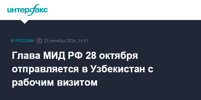 "С 28 по 29 октября глава российского внешнеполитического ведомства посетит с рабочим визитом Республику Узбекистан", - сказала она на брифинге в среду.