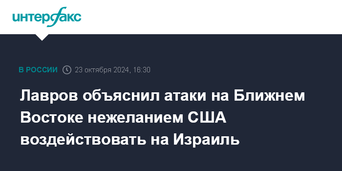 Лавров объяснил атаки на Ближнем Востоке нежеланием США воздействовать на Израиль
