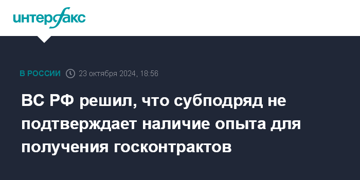 ВС РФ решил, что субподряд не подтверждает наличие опыта для получения госконтрактов