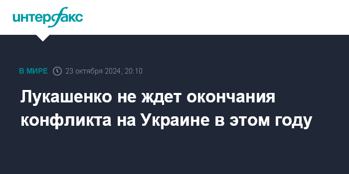 Москва. 23 октября. INTERFAX.RU - Президент Белоруссии Александр Лукашенко считает, что украинский конфликт не закончится в текущем году.