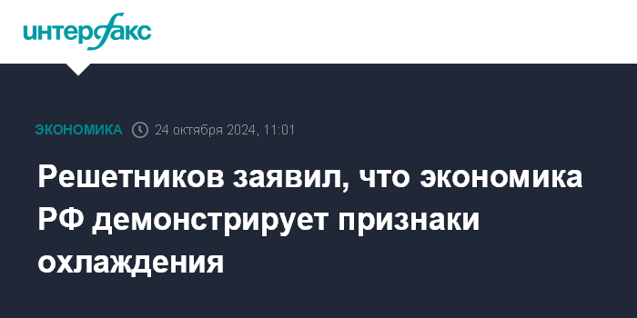 Решетников заявил, что экономика РФ демонстрирует признаки охлаждения