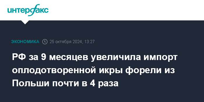 РФ за 9 месяцев увеличила импорт оплодотворенной икры форели из Польши почти в 4 раза