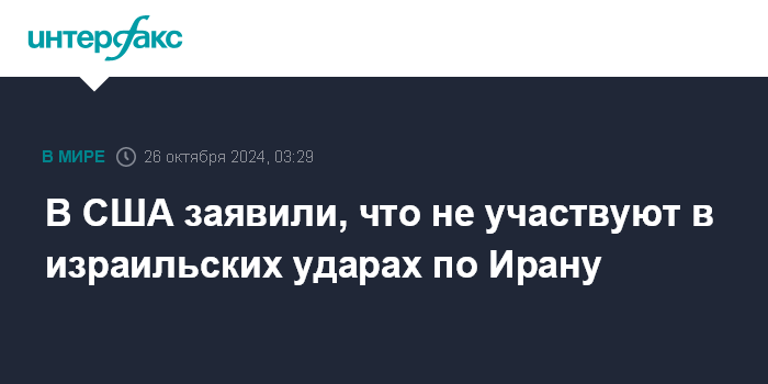В США заявили, что не участвуют в израильских ударах по Ирану