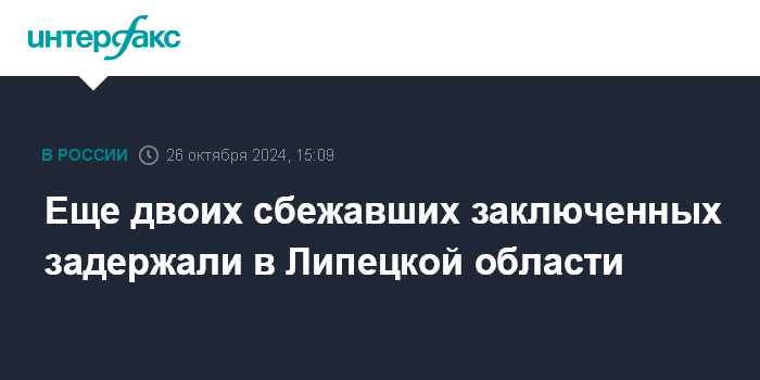 Москва. 26 октября. INTERFAX.RU - Губернатор Липецкой области Игорь Артамонов сообщил о задержании еще двух сбежавших заключенных из колонии.