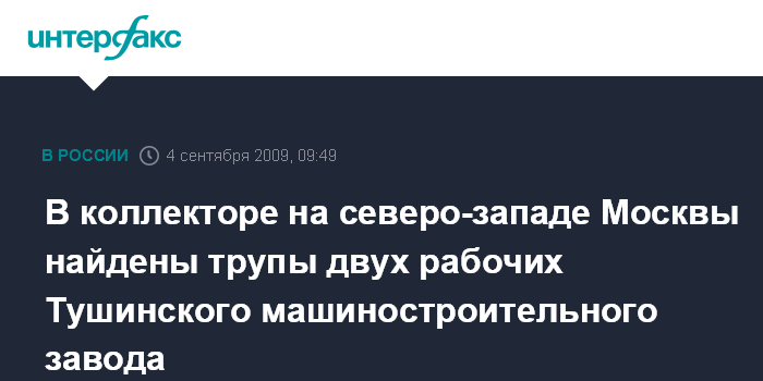 В коллекторе на северо-западе Москвы найдены трупы двух рабочих Тушинского машиностроительного завода