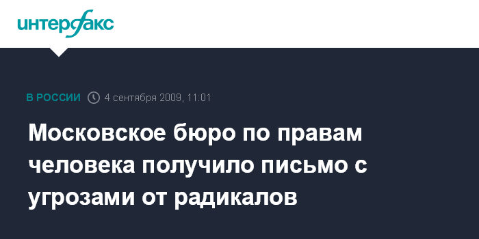 Москва. 4 сентября. INTERFAX.RU – Московское бюро по правам человека (МБПЧ) получило письмо с угрозами от радикальных националистов и собирается пожаловаться в правоохранительные органы.