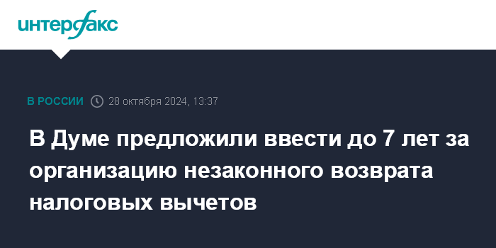 В Думе предложили ввести до 7 лет за организацию незаконного возврата налоговых вычетов