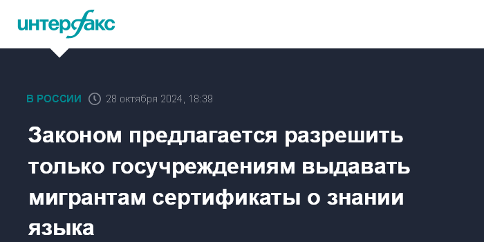 Законом предлагается разрешить только госучреждениям выдавать мигрантам сертификаты о знании языка
