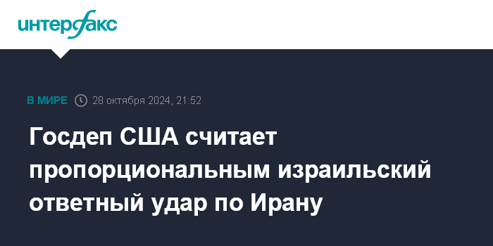 Госдеп США считает пропорциональным израильский ответный удар по Ирану