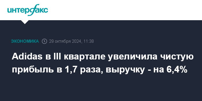 Adidas в III квартале увеличила чистую прибыль в 1,7 раза, выручку - на 6,4%