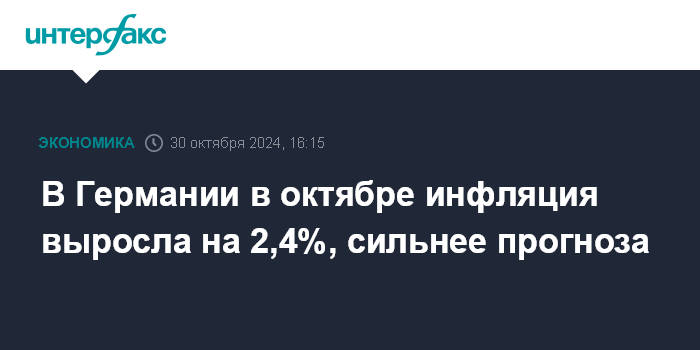 В Германии в октябре инфляция выросла на 2,4%, сильнее прогноза