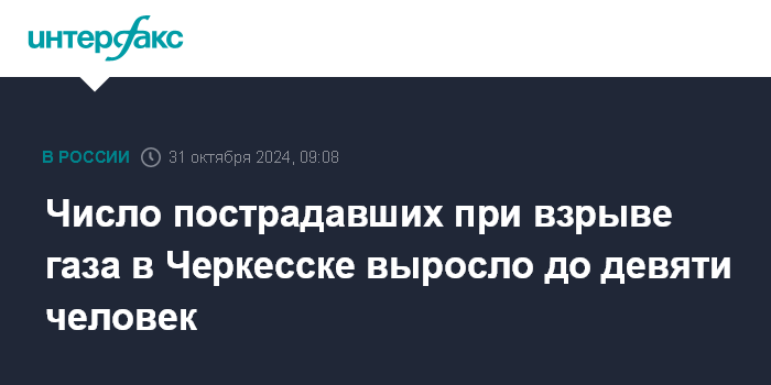 Москва. 31 октября. INTERFAX.RU - Девять человек обратились за помощью к медикам после вспышки паров газовоздушной смеси в многоквартирном доме в столице Карачаево-Черкесии Черкесске, сообщает ГУ МЧС по КЧР в четверг.