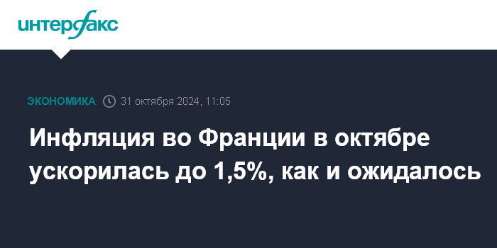 Инфляция во Франции в октябре ускорилась до 1,5%, как и ожидалось