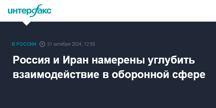 Россия и Иран намерены углубить взаимодействие в оборонной сфере