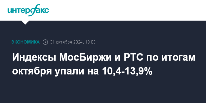 По итогам октября индексы МосБиржи и РТС упали на 10,4-13,9%, официальный курс доллара от ЦБ РФ за месяц вырос на 4,31 рубля.