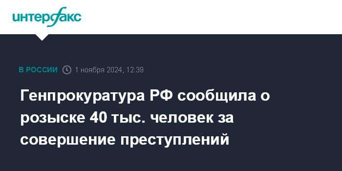 Генпрокуратура РФ сообщила о розыске 40 тыс. человек за совершение преступлений
