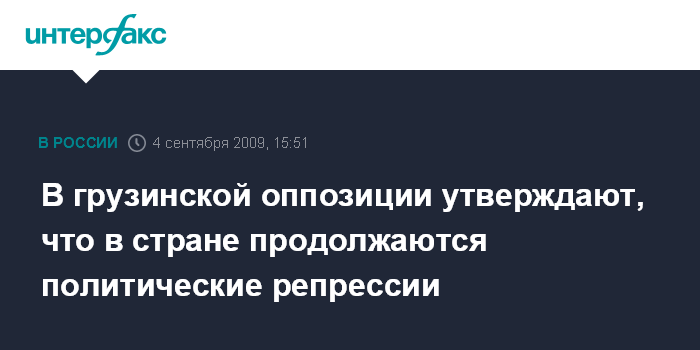 Москва. 4 сентября. INTERFAX.RU – Лидеры грузинской оппозиции в пятницу на встрече с представителями дипломатического корпуса заявили, что в Грузии продолжаются политические репрессии и в стране есть политзаключенные.