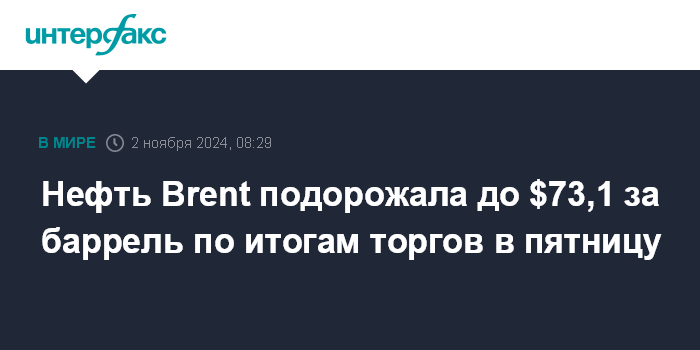 Нефть Brent подорожала до $73,1 за баррель по итогам торгов в пятницу