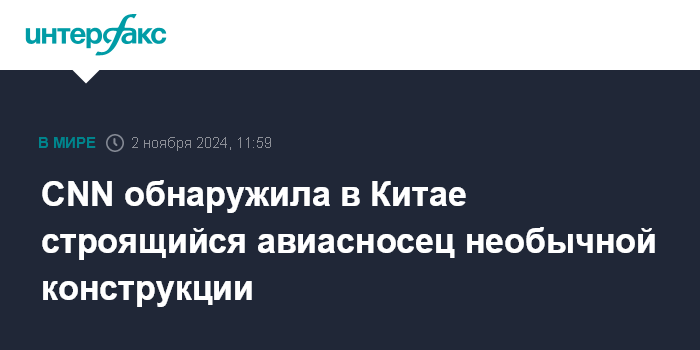 Москва. 2 ноября. INTERFAX.RU - В китайской провинции Гуандун ведется строительство авианосца нестандартной конструкции, возможно, уникальной в практике мирового кораблестроения, сообщает CNN со ссылкой на спутниковые снимки компании Planet Labs PBC.