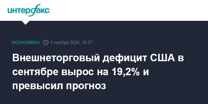 Внешнеторговый дефицит США в сентябре вырос на 19,2% и превысил прогноз