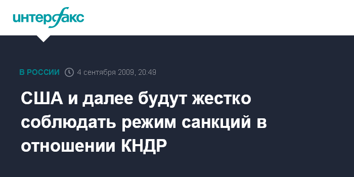 США и далее будут жестко соблюдать режим санкций в отношении КНДР