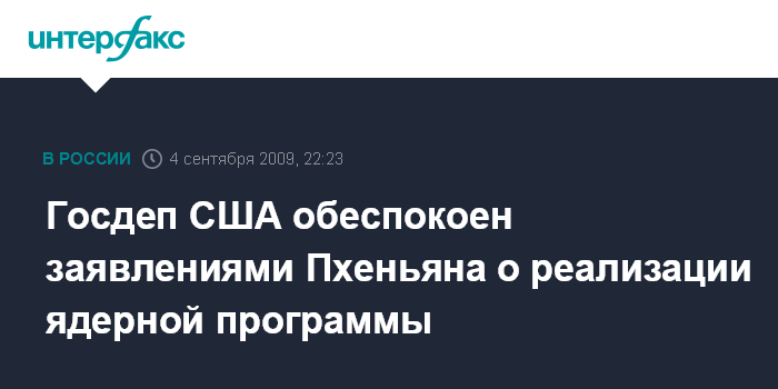 "Мы очень обеспокоены этими заявлениями, согласно которым они (северные корейцы - ИФ) приближаются к возможности производить оружие из ядерных материалов", - заявил, выступая в пятницу перед журналистами, представитель государственного департамента США Иэн Келли.