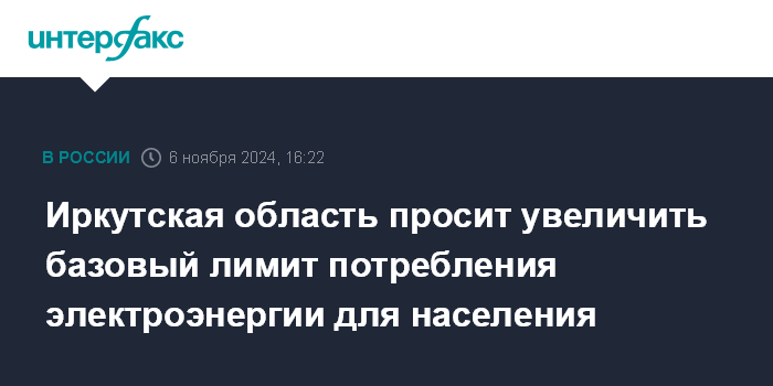 Иркутская область просит увеличить базовый лимит потребления электроэнергии для населения