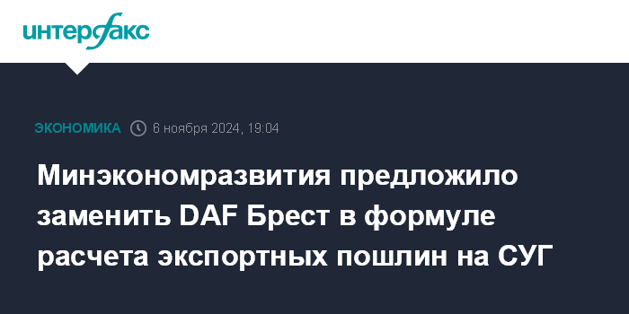 Минэкономразвития предложило заменить DAF Брест в формуле расчета экспортных пошлин на СУГ