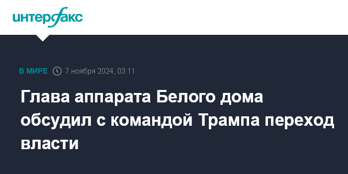 Глава аппарата Белого дома обсудил с командой Трампа переход власти