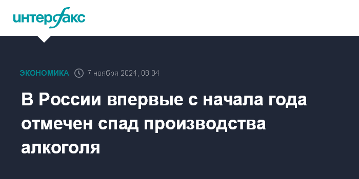 Отрицательный показатель зафиксирован впервые с начала года, все предыдущие периоды показывали рост. Это стало следствием снижения производства слабоалкогольных напитков почти на 48%, до 9,34 млн дал, виноградосодержащих напитков с этиловым спиртом - более чем наполовину, до 194,4 тысячи дал, плодовой алкогольной продукции - на 43%, до 5,5 млн дал.
