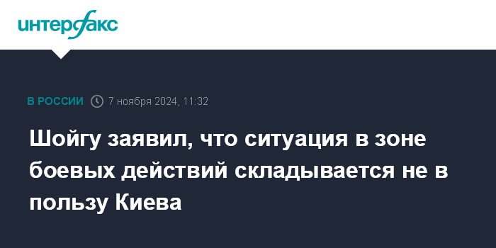 Шойгу заявил, что ситуация в зоне боевых действий складывается не в пользу Киева