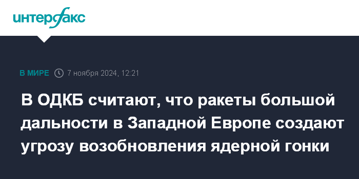 В ОДКБ считают, что ракеты большой дальности в Западной Европе создают угрозу возобновления ядерной гонки