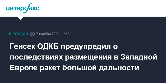 Генсек ОДКБ предупредил о последствиях размещения в Западной Европе ракет большой дальности
