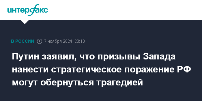 Путин заявил, что призывы Запада нанести стратегическое поражение РФ могут обернуться трагедией