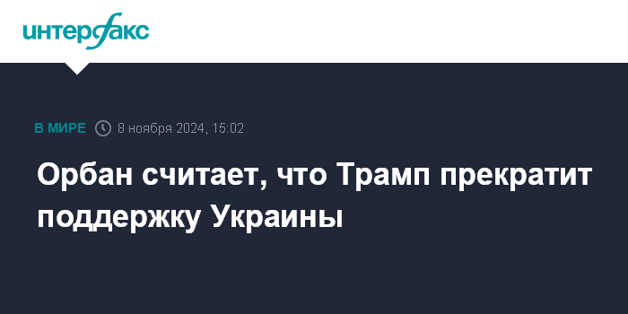 Москва. 8 ноября. INTERFAX.RU - Премьер-министр Венгрии Виктор Орбан в пятницу заявил, что избранный президент США Дональд Трамп и его команда после прихода к власти прекратят оказывать поддержку Украине, сообщает Associated Press.