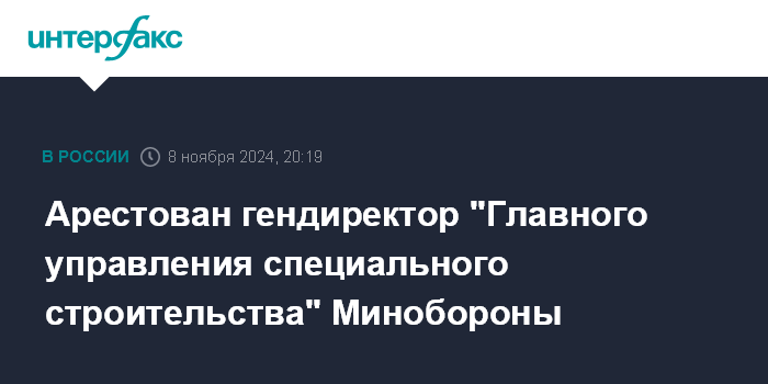 Арестован гендиректор "Главного управления специального строительства" Минобороны