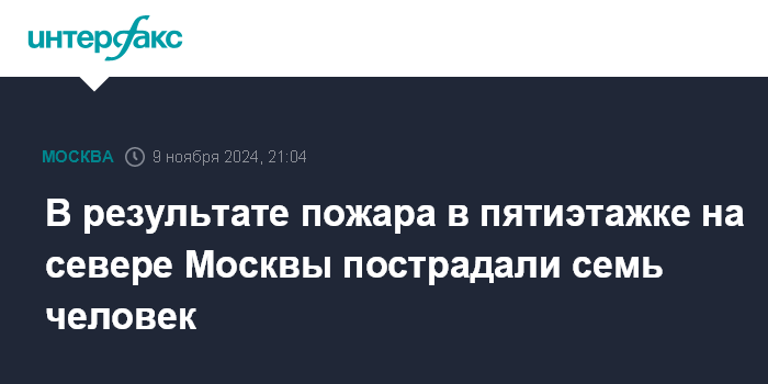 В результате пожара в пятиэтажке на севере Москвы пострадали семь человек