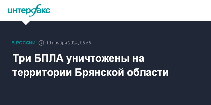 Москва. 10 ноября. INTERFAX.RU - Губернатор Брянской области Александр Богомаз сообщил об предотвращении атаки трех беспилотников по территории региона в ночь на воскресенье.