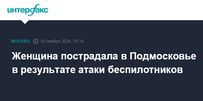 Москва. 10 ноября. INTERFAX.RU - Женщина пострадала в Московской области в результате атаки беспилотников, загорелись два дома, сообщил в воскресенье губернатор Подмосковья Андрей Воробьев.