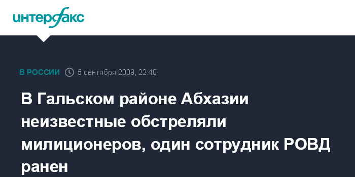 "Сотрудники милиции, проводившие патрулирование местности, случайно обнаружили у лесного массива трех вооруженных лиц. На требование сдаться неизвестные лица открыли огонь, и в результате завязавшейся перестрелки тяжелые ранения получил один сотрудник милиции и один из нападавших", - сказал Л.Когония.