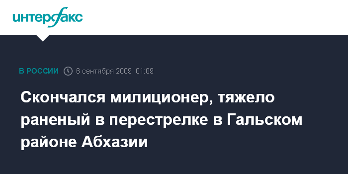 Сухуми. 6 сентября. ИНТЕРФАКС - Сотрудник абхазской милиции Рамаз Абухба, получивший тяжелые ранения во время перестрелки в селе Баргяб Гальского района, скончался в больнице.