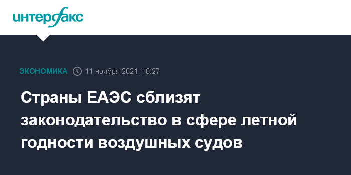 Отмечается, что недавно страны ЕАЭС договорились сблизить законодательство в сфере летной годности воздушных судов.