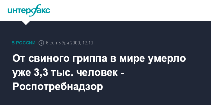 От свиного гриппа в мире умерло уже 3,3 тыс. человек - Роспотребнадзор