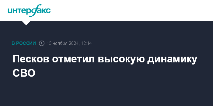 Москва. 13 ноября. INTERFAX.RU - Динамика специальной военной операции весьма высокая, заявил пресс-секретарь президента Дмитрий Песков.