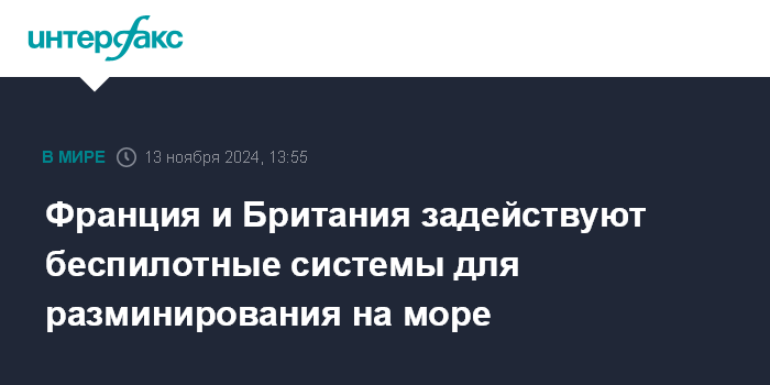 Компания Thales Group к концу 2024 года снабдит ВМС Франции первой серийной версией автономной системы для разминирования. В компании завили, что это будет первой шаг Франции к полностью дистанционному разминированию. ВМС Британии получит первую такую систему в начале 2025 года, сказано в публикации.