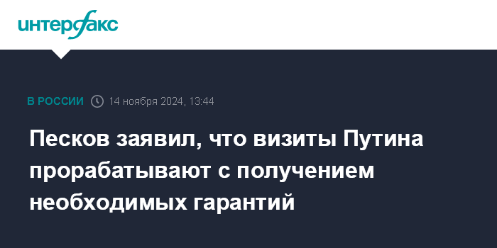 Песков заявил, что визиты Путина прорабатывают с получением необходимых гарантий