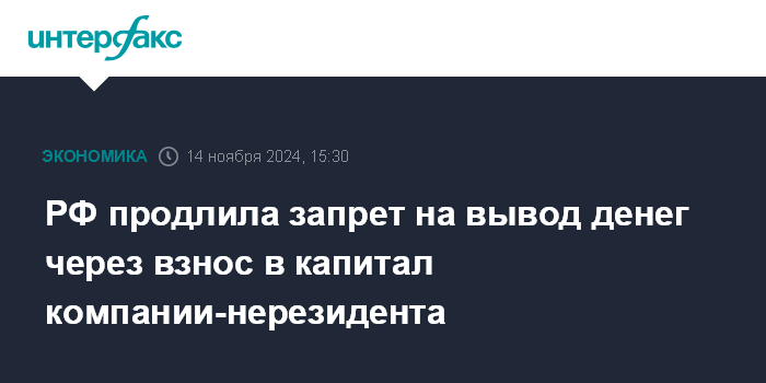 РФ продлила запрет на вывод денег через взнос в капитал компании-нерезидента