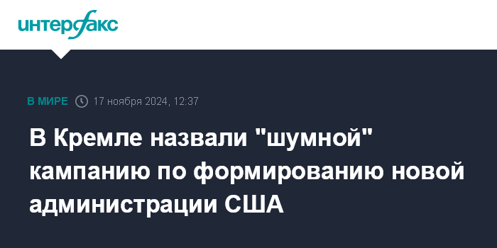 Москва. 17 ноября. INTERFAX.RU - Пресс-секретарь президента РФ Дмитрий Песков назвал "шумным" процесс формирования новой администрации США.
