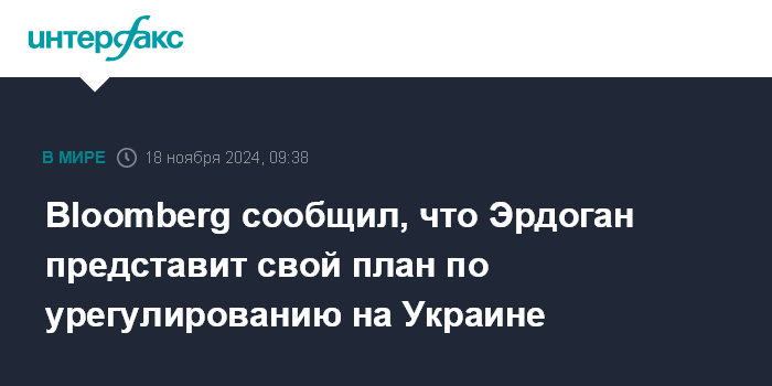Bloomberg сообщил, что Эрдоган представит свой план по урегулированию на Украине