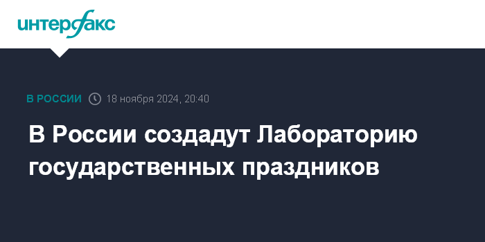 Отмечается, что целью лаборатории будет "формирование единого концептуального подхода к проведению государственных праздников на базе общего опыта". В перечень прорабатываемых праздников могут войти только праздники из числа официальных государственных праздников РФ, подчеркнули в ведомстве.
